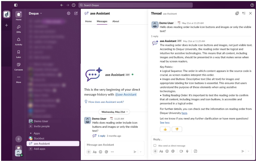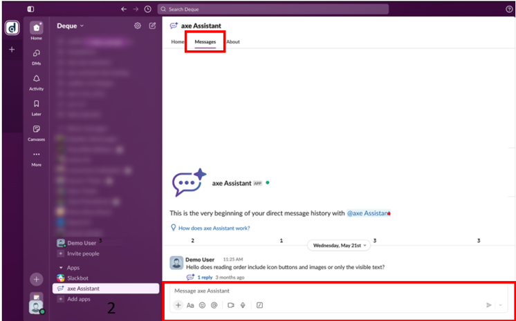 The axe Assistant Messages section is a built-in support assistant designed to answer user questions and streamline access to help resources within the application. Whether you are new to the platform or need clarification on digital accessibility, the Messages option provides real-time responses.