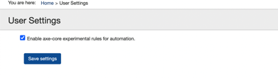 - Aktivieren Sie das Kontrollkästchen, um experimentelle Axe-Core-Regeln für die Automatisierung zu aktivieren. Dies ist standardmäßig nicht aktiviert.
