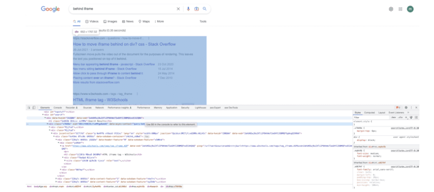 - Avec un élément sélectionné : Cliquez avec le bouton droit sur un élément d'une page Web et sélectionnez Inspecter l'élément [(Q)]{.kbd}.