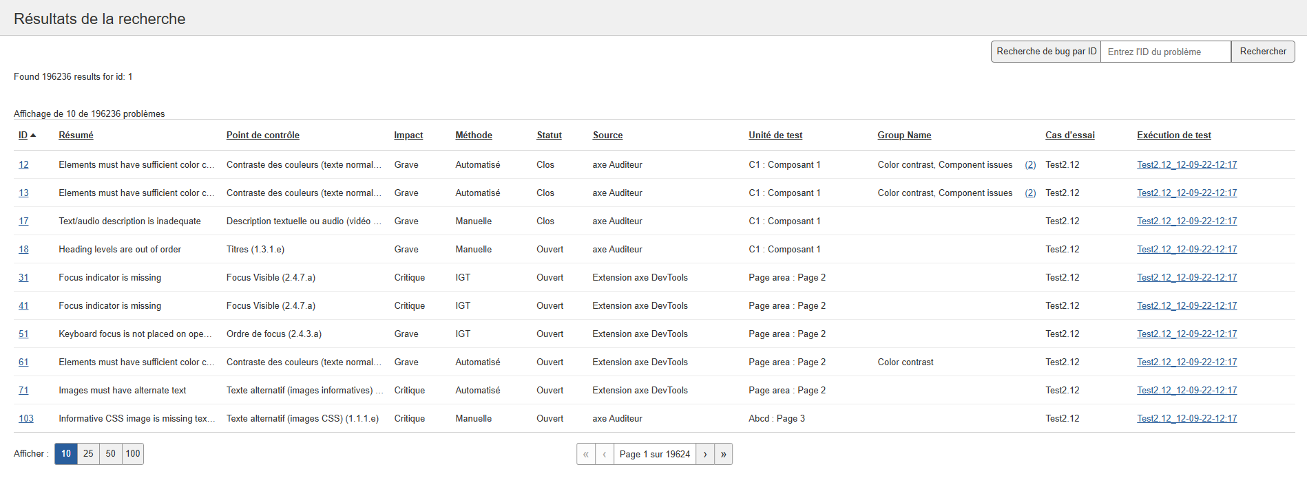 - Issue Search by ID: Vous pouvez rechercher n'importe quel problème en fonction de son ID à partir de la page d'accueil. Cela vous fait gagner du temps et des efforts, et vous n'avez pas besoin de naviguer vers une exécution de test pour rechercher le problème.