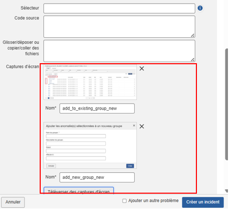 Les utilisateurs peuvent désormais inclure des captures d'écran supplémentaires par incident lors de l'ajout ou de la modification. éditer un incident. Ce nombre a été augmenté de la limite de 10 à 15 captures d'écran par incident.