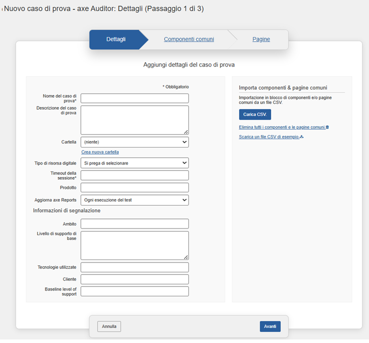 Nota: solo gli utenti con l'integrazione di axe Reports abilitata durante l'installazione di axe Auditor possono visualizzare questo campo.