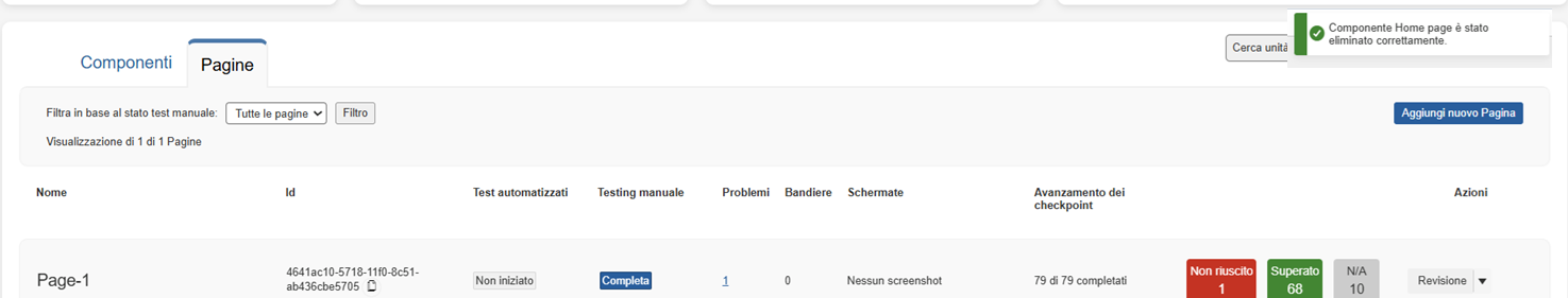 Elimina una pagina o un componente attivare il collegamento Delete .