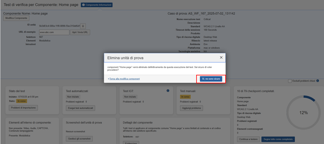 Selezionare Yes I'm Sure nella finestra di dialogo Elimina unità di prova per confermare l'eliminazione.