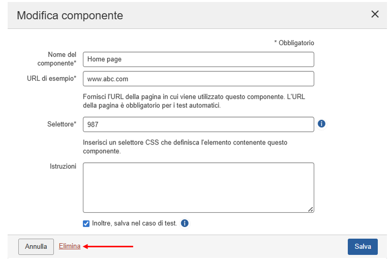 - Se lo desideri, seleziona la casella di controllo Also save to test case .