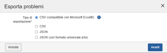 JSON (con formato universale axe) (consigliato):
