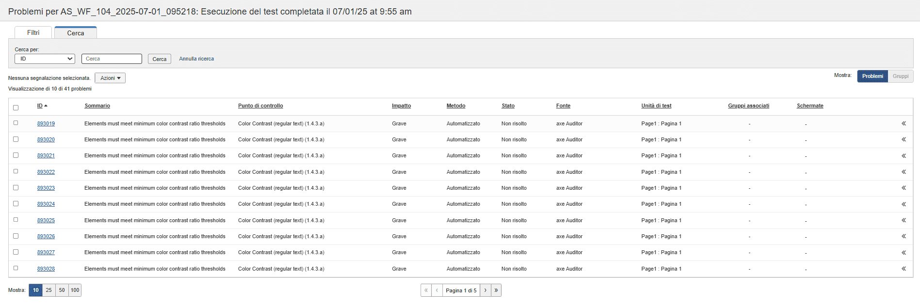 - Issue Search by ID: Puoi cercare qualsiasi problema in base al suo ID dalla Home page. In questo modo risparmi tempo e fatica e non devi andare a un'esecuzione di test per cercare il problema.