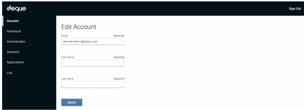 - Email: Obbligatorio e modificabile. Sebbene questo campo sia modificabile, l'indirizzo email non deve essere aggiornato da questa schermata. Per modificare l'email, contattare Deque Helpdesk.