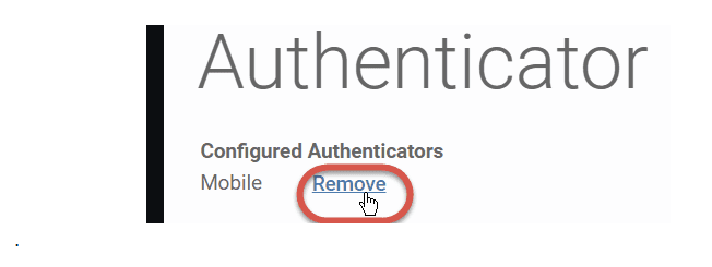 Per rimuovere un autenticatore configurato, fare clic sul collegamento Remove nella schermata Autenticatore.