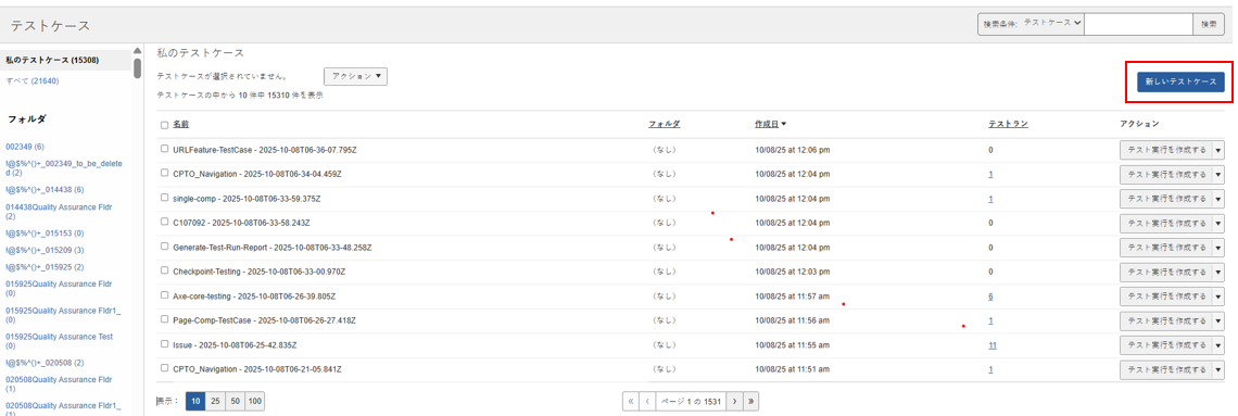 テストケース画面で、ページ右上の新規テストケースボタンをクリックします。