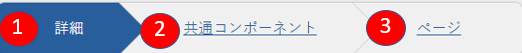各パネル(詳細、共通コンポーネント、)のフォーム項目に必要に応じて入力してください。 各パネル(詳細、共通コンポーネント、ページ)のフォーム項目に必要に応じて入力してください。