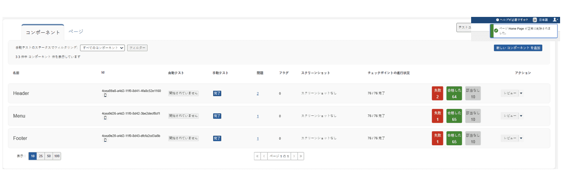 テストの実施中にテストの範囲が変更され、ページやコンポーネントが対象外となる場合があります。テストユニット(ページやコンポーネント)はTest Run(テストラン)に追加または削除できます。