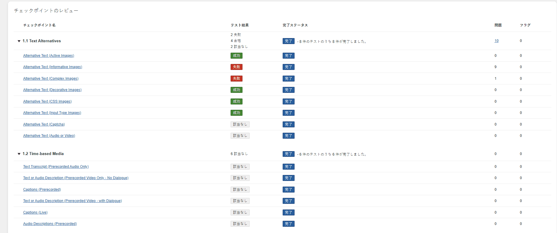 注意: 割り当てられた結果や問題が追加されていないすべてのチェックポイントテストには、割り当てられる結果は「合格」になります。結果が未設定で問題が追加されているものには、割り当てられる結果は「フェイル(FAIL)」になります。