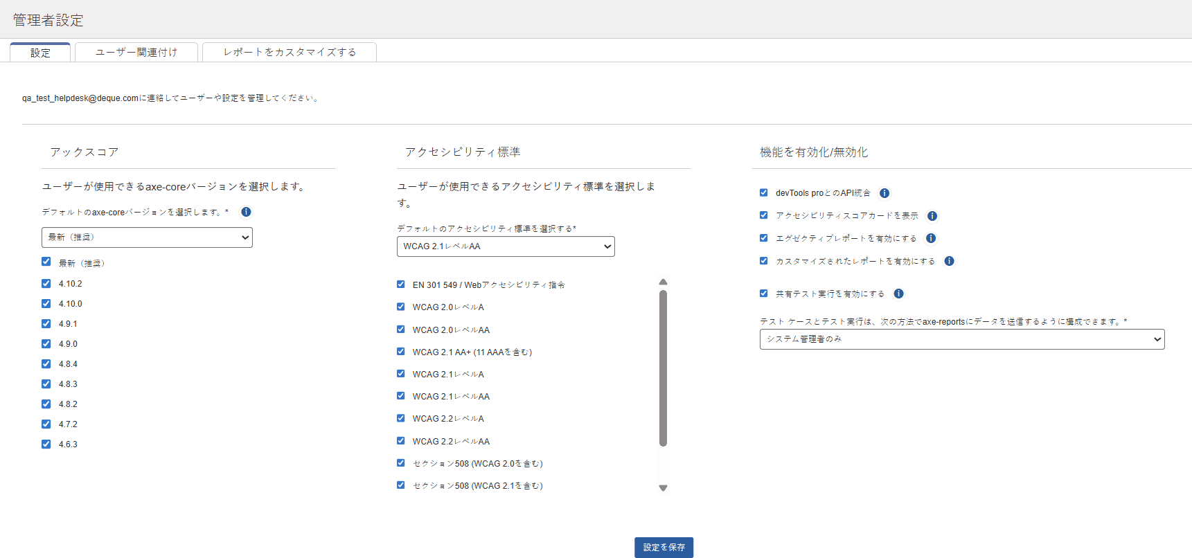 • リリースのアップグレード後、axe-core が更新された場合、管理設定のアクセシビリティ標準はデフォルトの設定に上書きされます。