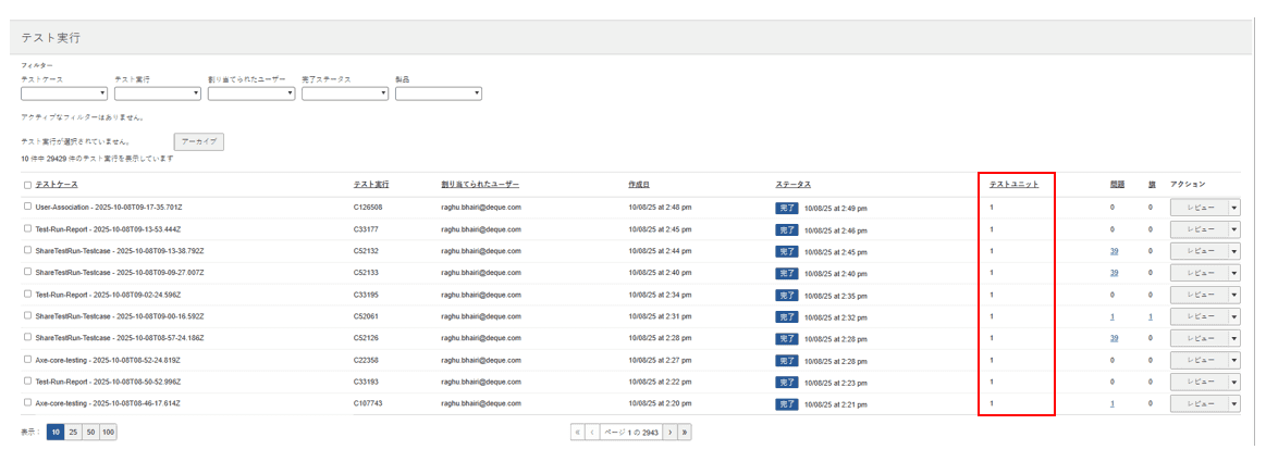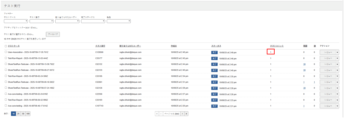 一度選択したページネーション値はページをまたいで保持されるため、ホーム画面やテスト実行、テストケースなど複数のページを閲覧する際も、常に同じページネーション設定でコンテンツを簡単にナビゲートできます。