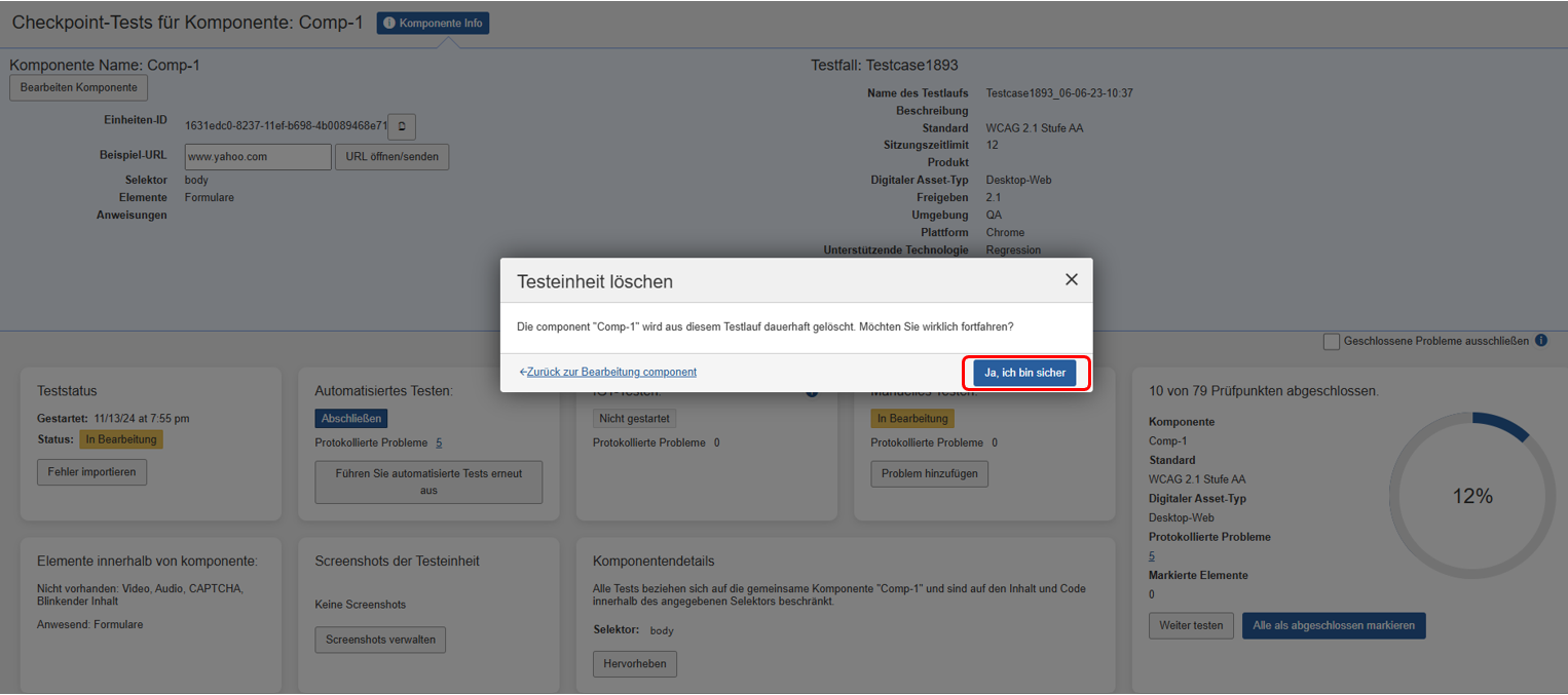 Selecteer Yes I'm Sure in het dialoogvenster Testeenheid verwijderen om het verwijderen te bevestigen.