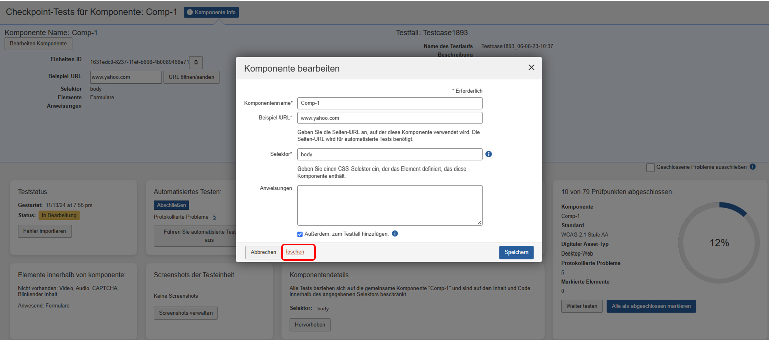 De scope van een test kan veranderen terwijl u midden in een test zit en de pagina's of componenten zijn niet meer relevant. Testeenheden (pagina's of componenten) kunnen aan een testrun worden toegevoegd of eruit worden verwijderd.