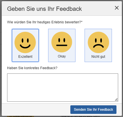- Beoordeel met de juiste smiley, voer feedback in en verstuur uw feedback.