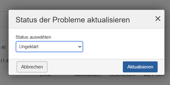 Het dialoogvenster Probleemstatus bijwerken wordt weergegeven. Selecteer de bijgewerkte status voor het probleem of de problemen.