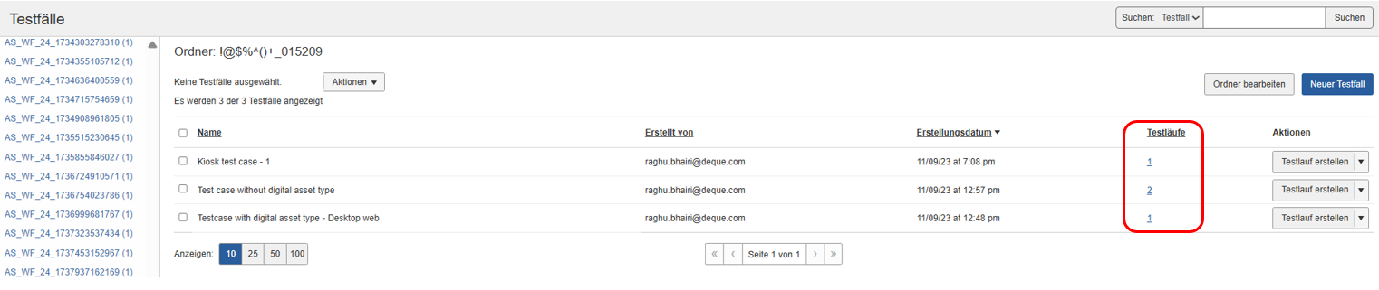 To view test run(s) for a test case from the Test Cases screen: