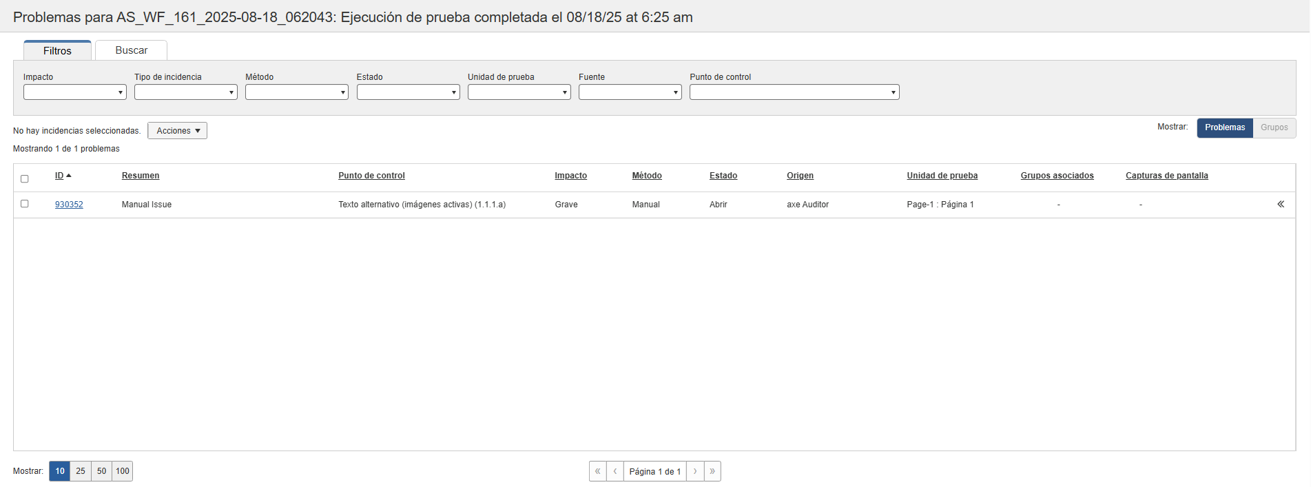Aparece la pantalla Ver Problema # para el caso de prueba: