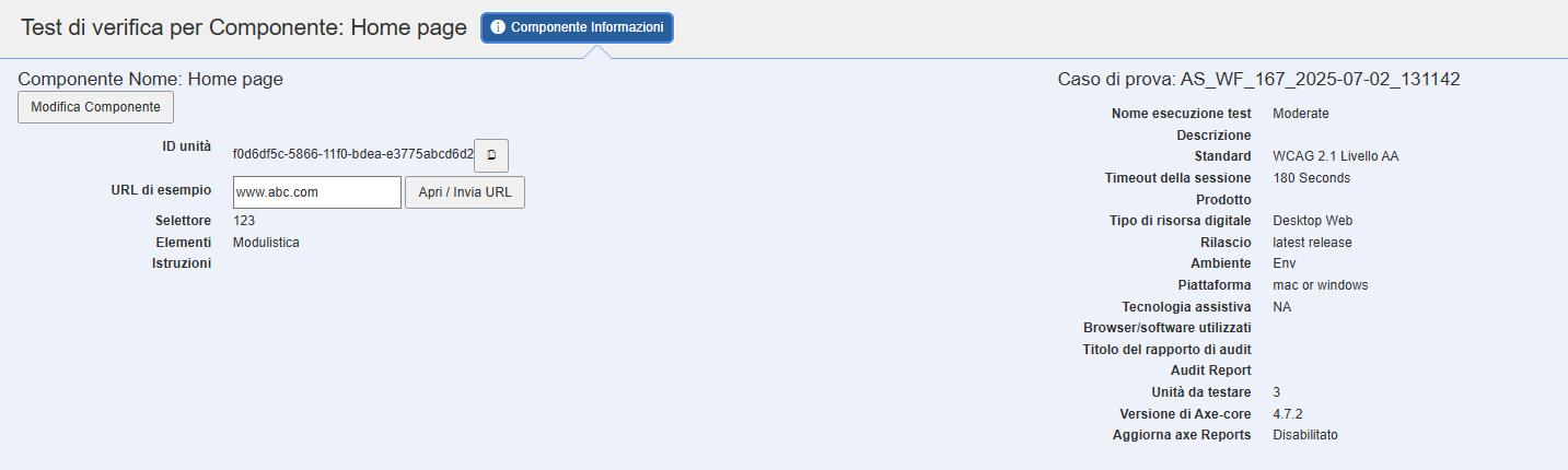4. Testing Status section: Questa sezione comprende quanto segue dettagli: