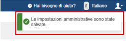 Un messaggio di conferma appare in alto a destra della schermata Impostazioni amministratore per indicare il completamento con successo delle modifiche alle impostazioni: