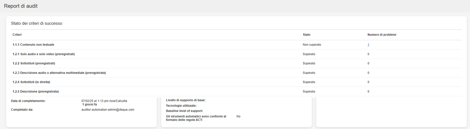 Clicca Generate Audit Report. Viene visualizzata la pagina Rapporto di controllo.