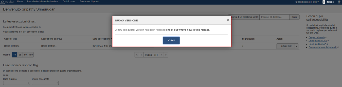 Con questa versione, Axe Auditor fornirà notifiche di rilascio in-app per tenere informati gli utenti sui prossimi aggiornamenti e sulle nuove funzionalità aggiunte.