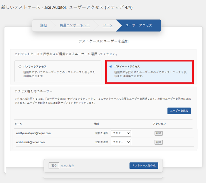 Control de acceso de usuarios para casos de prueba y ejecuciones de pruebas