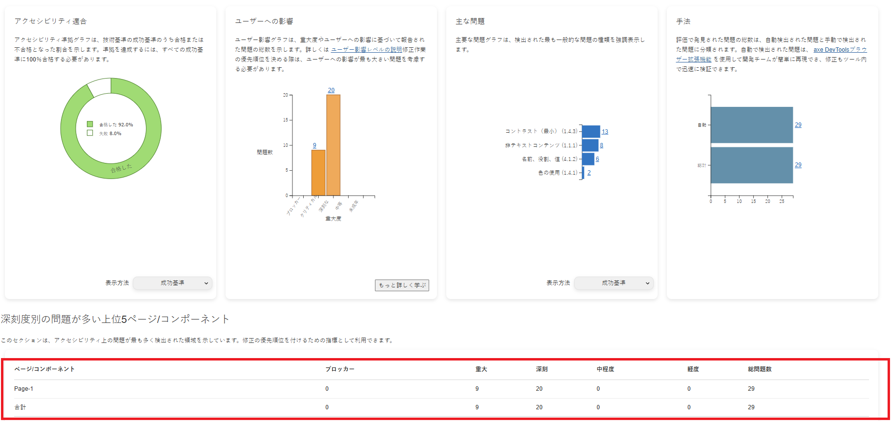 • Resumir las 5 páginas o componentes principales afectados, priorizados por gravedad del problema (Bloqueante → Menor).