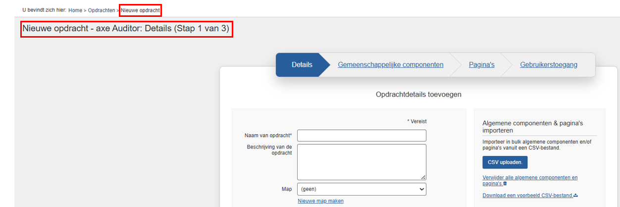 Het scherm Testcase bewerken: Details (stap 1 van 3) wordt weergegeven, waarbij het paneel Details standaard eerst wordt weergegeven. U kunt nu bestaande veldwaarden bewerken door tekstveldinvoeren en menuselecties in elk paneel te wijzigen. Klik vervolgens in het paneel Pagina's op de knop Testcase opslaan om de door u gemaakte bewerkingen op te slaan.