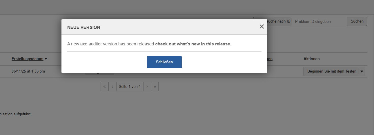 - New Version Notification – Wanneer Deque een nieuwe versie uitbrengt (bijv. 2.25.0), zien gebruikers een melding op hun scherm met details over de release en een link naar de release notes.