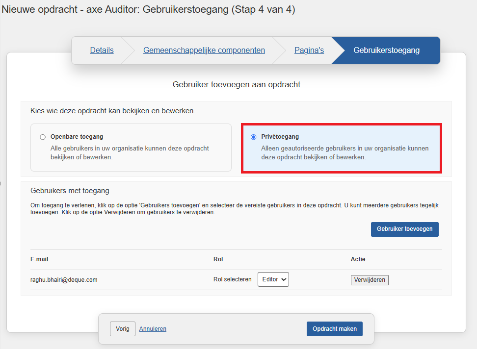 - Editor: Kan gebruikers toevoegen/verwijderen, testcases toewijzen, cases bewerken of dupliceren en testruns beheren.