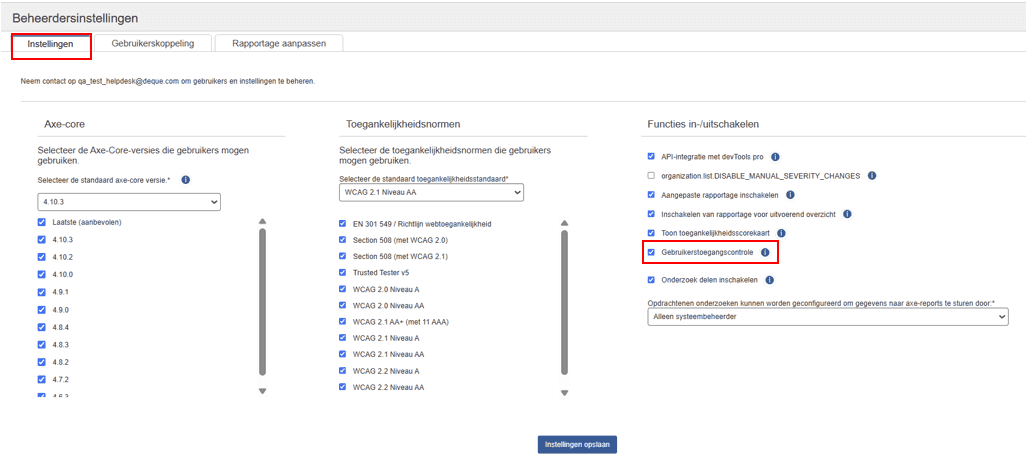 Deze optie is alleen beschikbaar op de pagina Nieuwe testcase wanneer de beheerder de optie Gebruikerstoegangsbeheer inschakelt op de pagina Beheerdersinstellingen. Om deze optie in te schakelen, ga naar ** Beheerdersinstellingen** > ** Instellingen** > ** Gebruikerstoegangsbeheer** onder de ** Functies in-/uitschakelen** Sectie, selecteer dan ** Instellingen opslaan**.