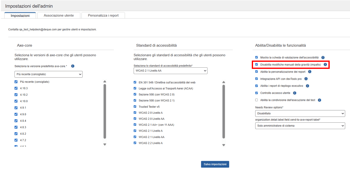Gli amministratori ora possono controllare chi può modificare la gravità dei problemi (impatto). Una nuova impostazione "Disabilita modifiche manuali alla gravità (impatto)" è disponibile nelle Impostazioni amministratore. Se abilitata: