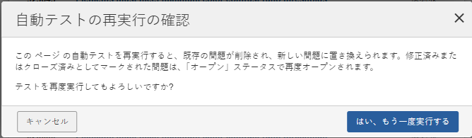 自動テストを再実行する場合: 自動テストを再度実行するかどうかを確認するメッセージが表示されます。自動テストを再実行するには、「Yes, Run Again」ボタンをクリックします。