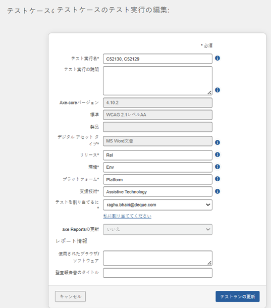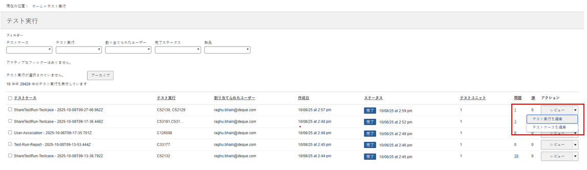 : テスト実行に割り当てられたユーザーのみが、特定のテスト実行を編集できます。