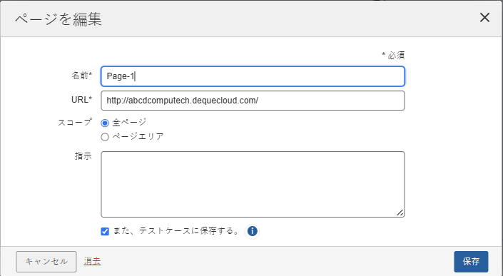テストケース内の共通ページは、進行中のテスト実行内でのみ編集できます。テスト実行が完了すると、ユーザーはテスト実行の情報の名称を変更できなくなります。