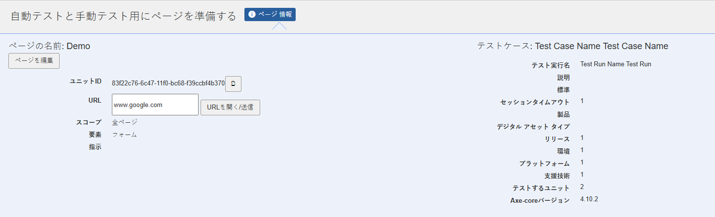URL アクセシビリティのテスト対象となるページ、サイト、またはアプリケーションのURLを、完全修飾ドメイン名(FQDN)形式で指定・修正してください。