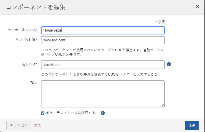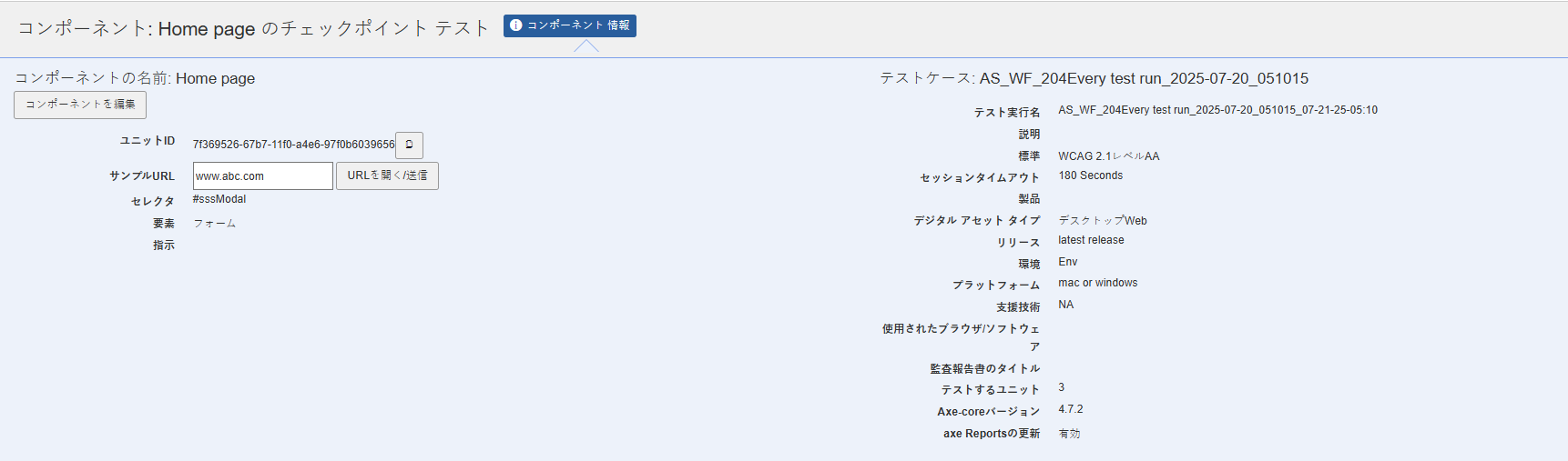 進行中のテスト実行内でのみ、テストケース内の共通コンポーネントを編集できます。テスト実行が完了すると、ユーザーはテスト実行の情報の名称を変更できなくなります。