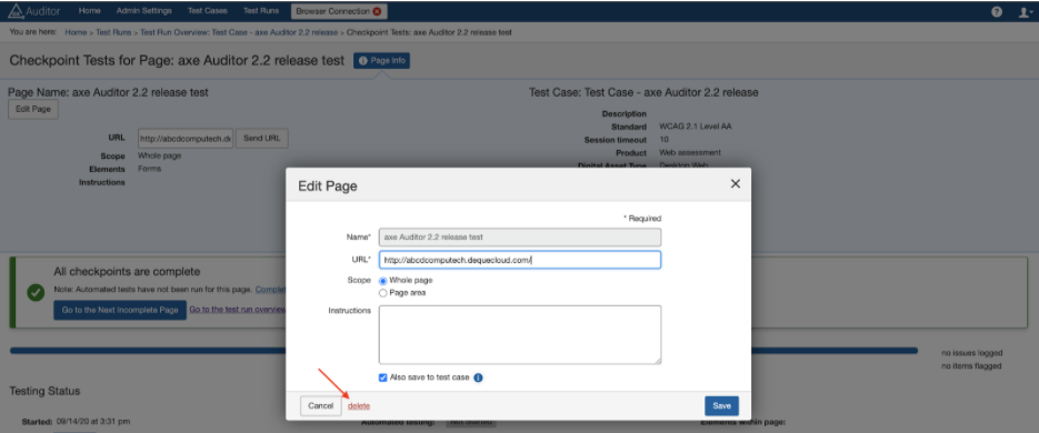 The scope of a test can change while you are in the middle of a test and the pages or components are no longer relevant. Test units (pages or components) can be added or removed from a Test Run.