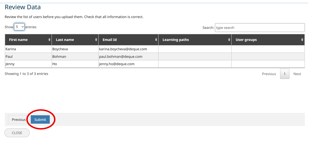 - Once you submit, the system will begin adding users – again, to your account and to any subscriptions, learning paths, and groups that you specified.