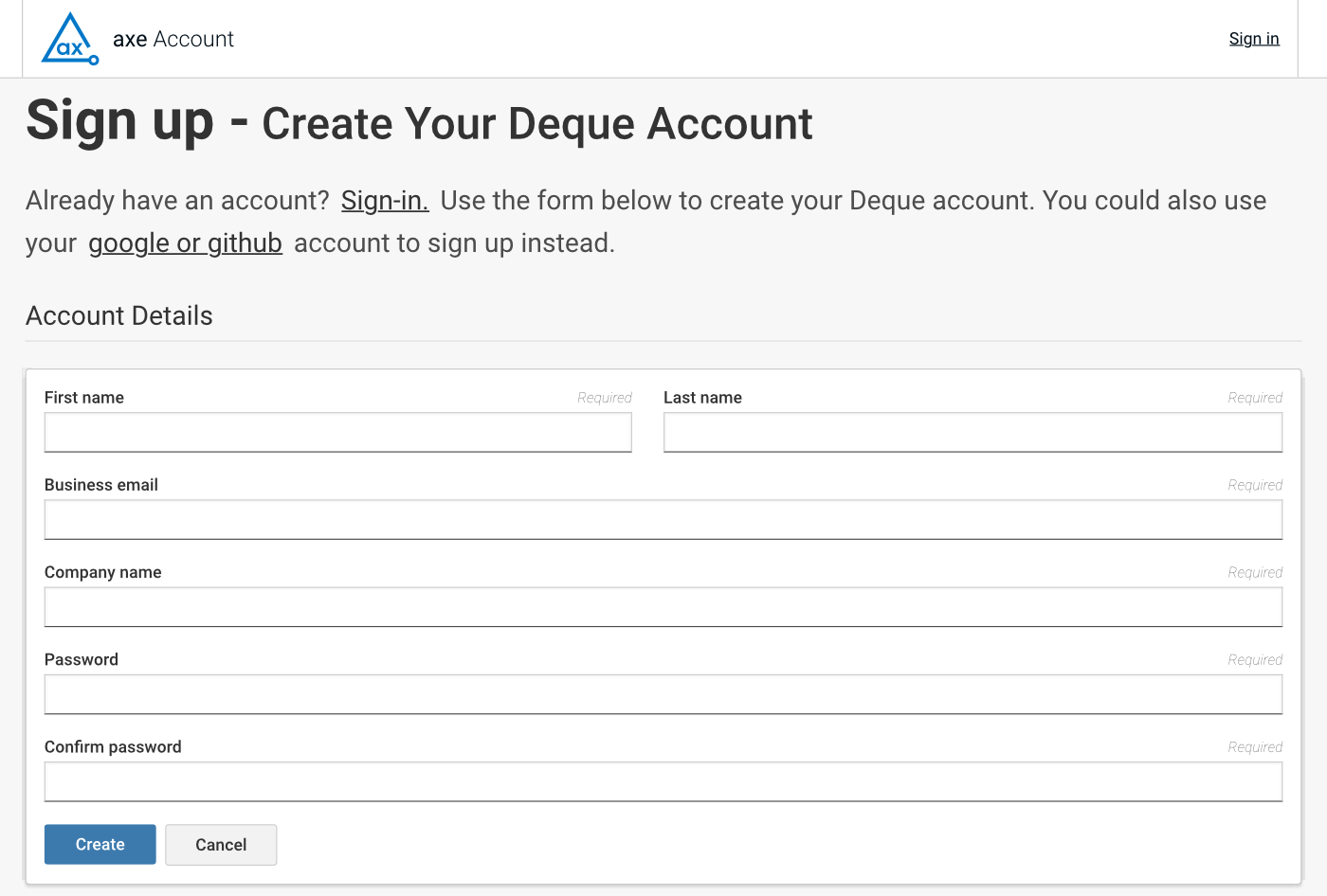 Este artículo le muestra cómo configurar su cuenta axe. Se le solicitará que cree una nueva cuenta de axe si crea un nuevo proyecto sin una cuenta de axe (como se detalla en Comience a usar axe Developer Hub).