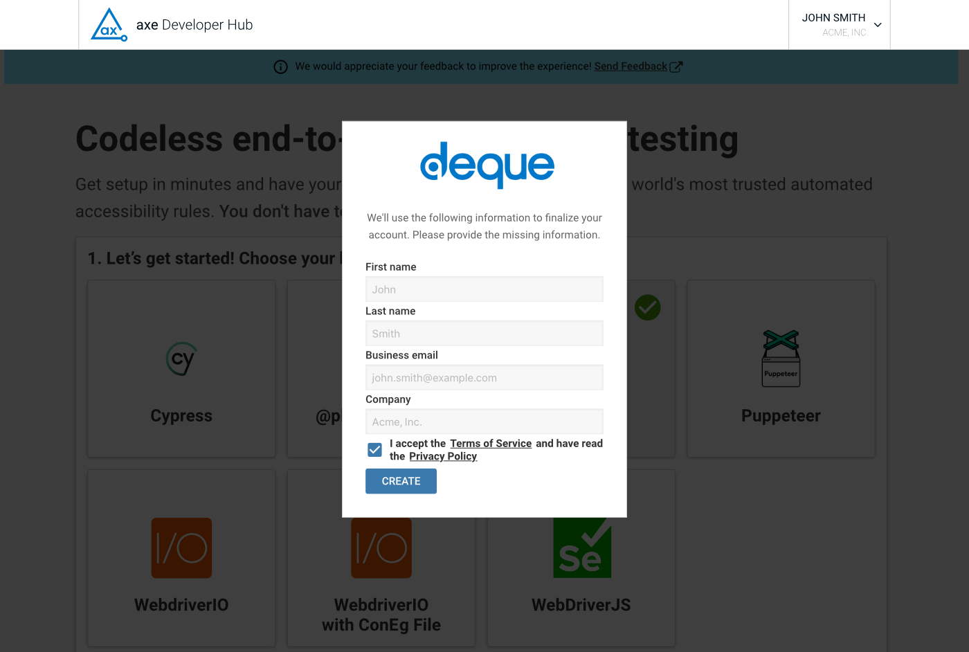 Questo articolo ti mostra come impostare il tuo account axe. Ti verrà richiesto di creare un nuovo account axe se crei un nuovo progetto senza un account axe (come descritto in Introduzione all'hub per sviluppatori axe).