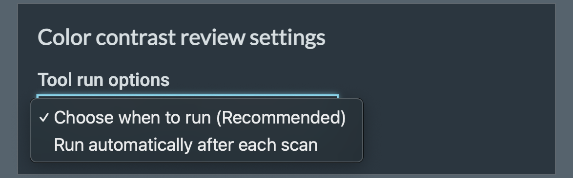 - Run automatically after each scan: If reviewable color contrast issues arise, this tool will run automatically.