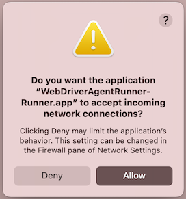 WebDriverAgentRunner-Runner.app, eingehende Verbindungen anzunehmen, wenn Sie dazu aufgefordert werden.