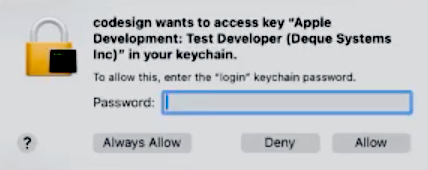 - Geben Sie Ihr Schlüsselbundpasswort ein, wenn Sie dazu aufgefordert werden, und wählen Sie 'Immer zulassen'.