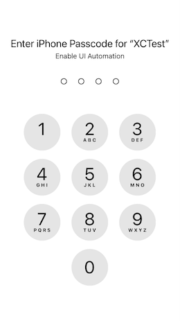- Wenn Sie ein physisches Gerät verwenden, geben Sie bei Aufforderung den Gerätepasscode ein, um die Testautomatisierung zu starten.