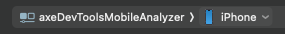 - Öffnen Sie das Xcode-Projekt axe DevTools Mobile Analyzer, öffnen Sie in der oberen Leiste des Projekts das Dropdown-Menü „Geräte“ und wählen Sie unter „iOS-Geräte“ das Kobiton-Gerät aus.